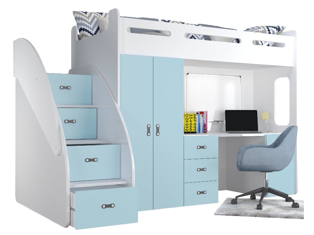 Dokonale kombinuje místo na spaní, učení a skladování, což z něj činí ideální řešení i pro malé místnosti.