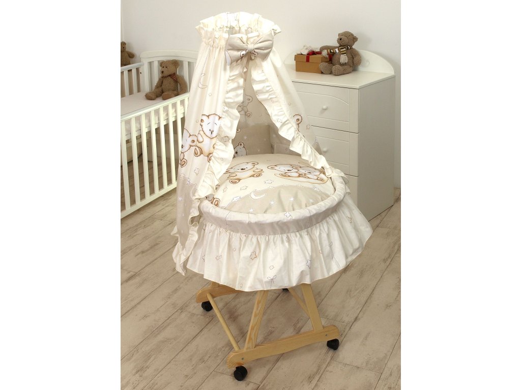 Postýlka na kolečkách s přírodním proutím a vzorem medvídka.