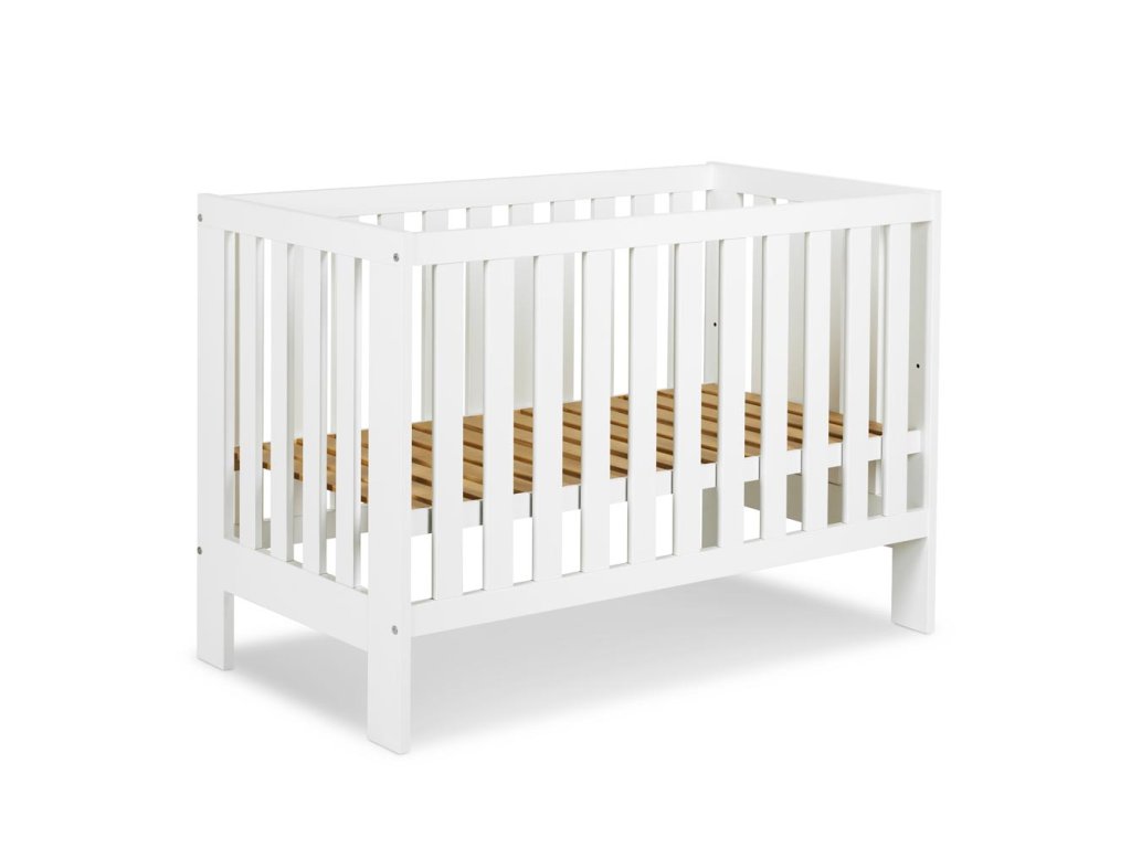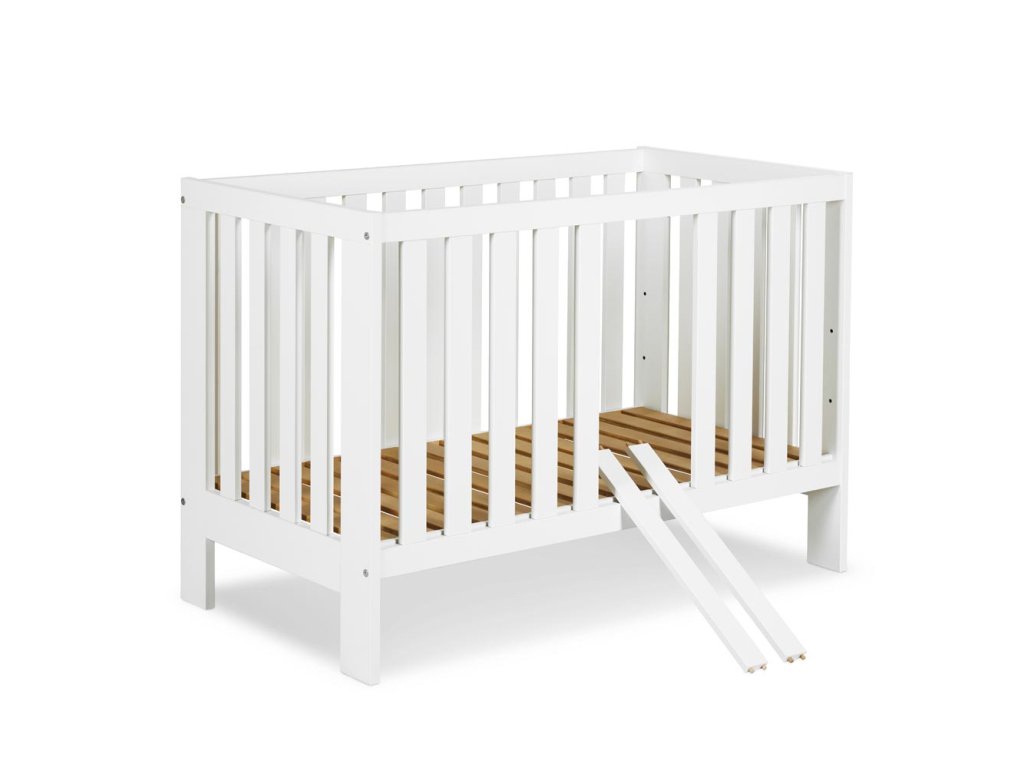 Postýlka pro kojence 120 x 60 cm se dvěmi vyndavacími příčkami a 3 polohami nastavení dna postýlky.