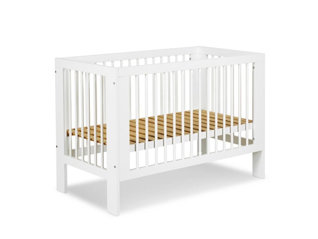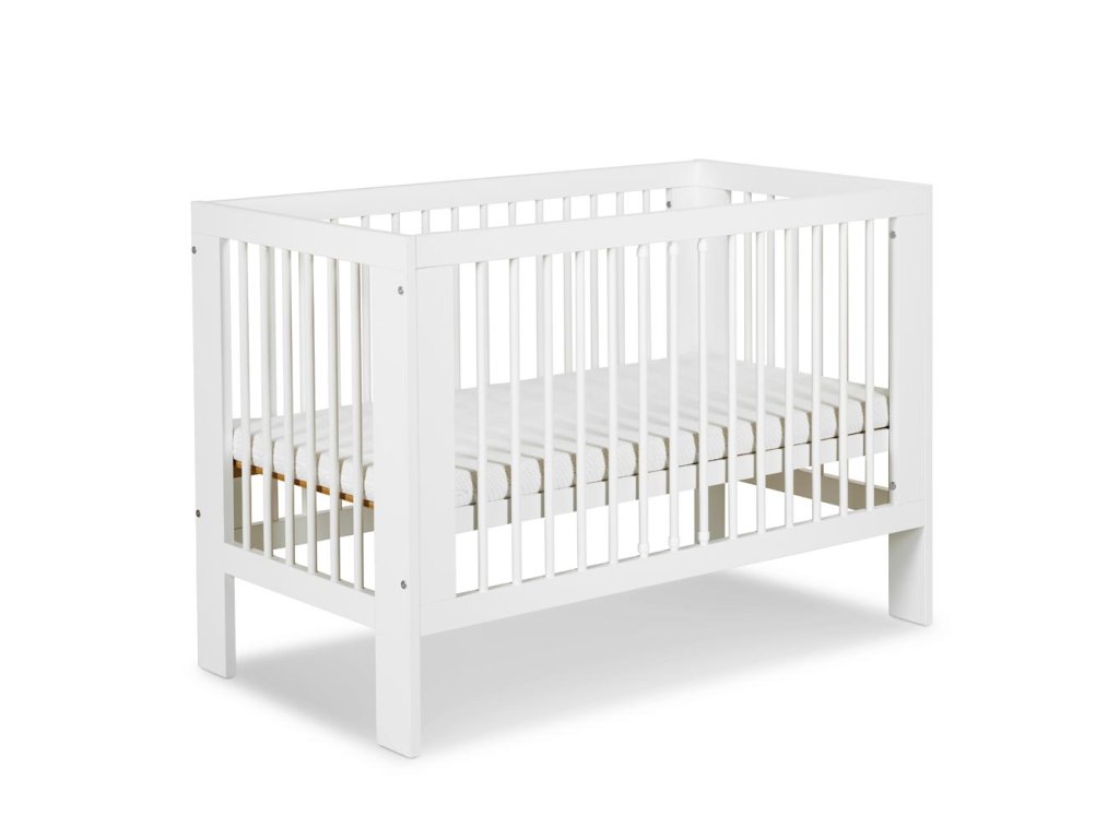 Klasická postýlka OLI o rozměrech 120x60 s příčkami na všech stranách, Vám umožní mít vaše dítě neustále na očích.