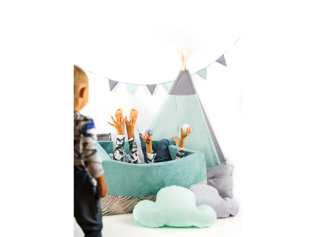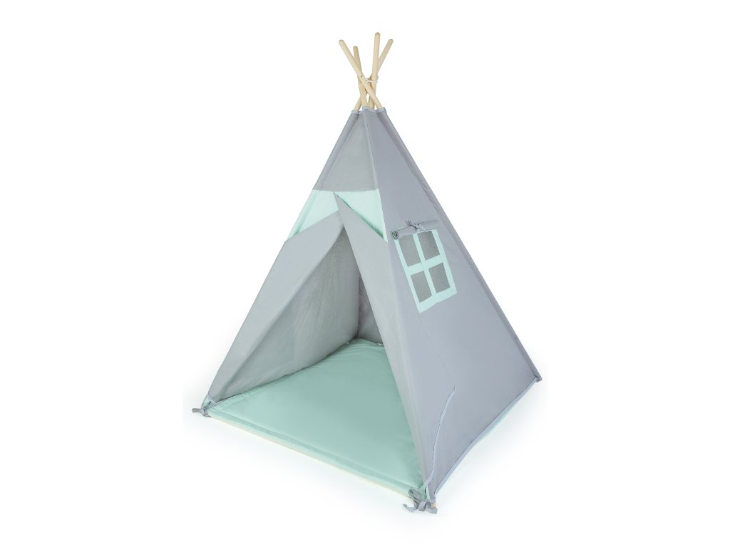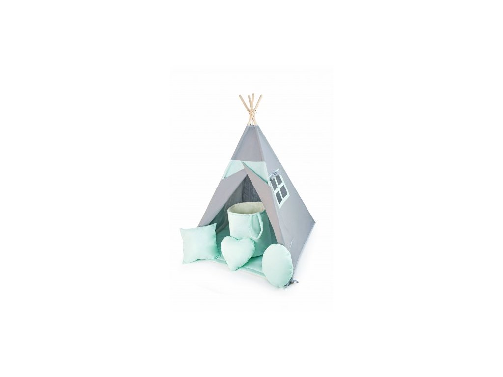 Dětský stan TEEPEE s příslušenstvím ŠEDÝ/MÁTOVÝ