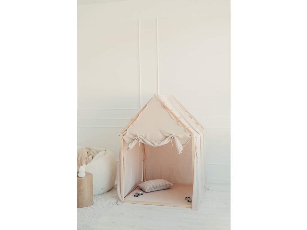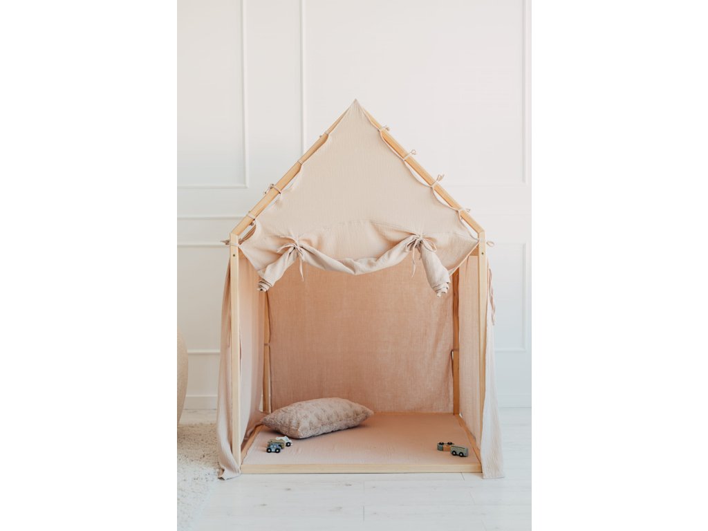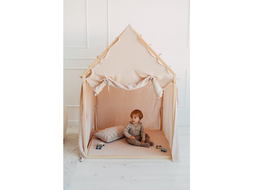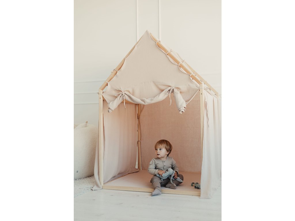zajišťuje stabilitu a odolnost. Lehký a vzdušný bavlněný mušelín dodá domečku jemný a útulný pocit.