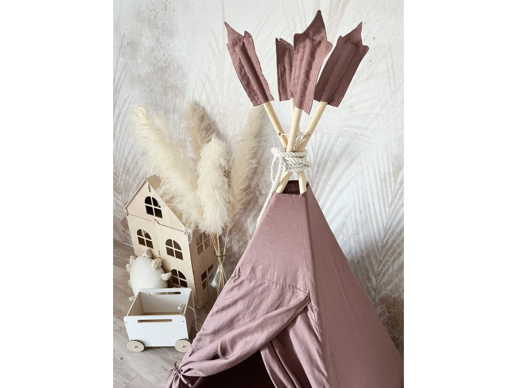 - 4 TYČE borovicové 180cm dlouhé. Tyče mají otvory, které umožňují stojanům svázat speciální provázkem. Díky tomu bude mít celý stan stabilitu.